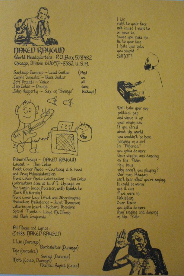 - Matter #4 (July 1983) also list Santiago as "Ex-Naked Raygun" and talks about his current band The Interceptors, so it appears he was out of the band by the release date. Yet the liner notes for Throb Throb state that he played the Basement Screams record release party. Not sure if he returned just for that or the release party was slightly before the "mainstream" release.