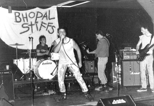 Bhopal Stiffs were a popular Chicago punk/hardcore band from 1985-1989. They released a ten-track demo, a 12" EP and a 7" record in their career. Bhopal Stiffs were most well-known for their live shows, and played Exit more than just about any other band in the mid-to-late 80s.