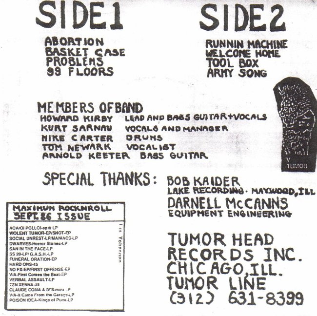 Violent Tumor was a hardcore band from the mid-80s. They released one record which was pretty well received but isn't very well known.